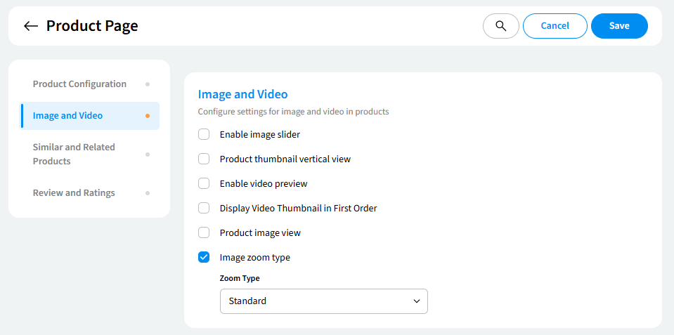 - Upload your desired image directly to the "Image and Video" section of your product page settings.