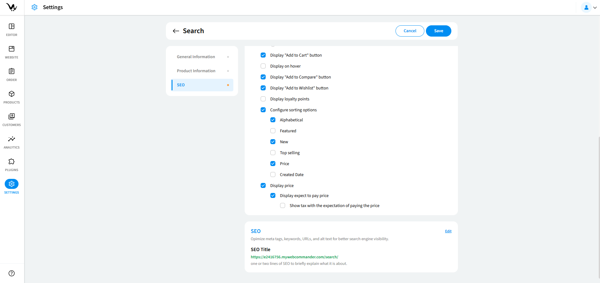 • SEO settings are not improving visibility: Ensure Enable Meta Descriptions and Custom Search Result URLs are properly configured.