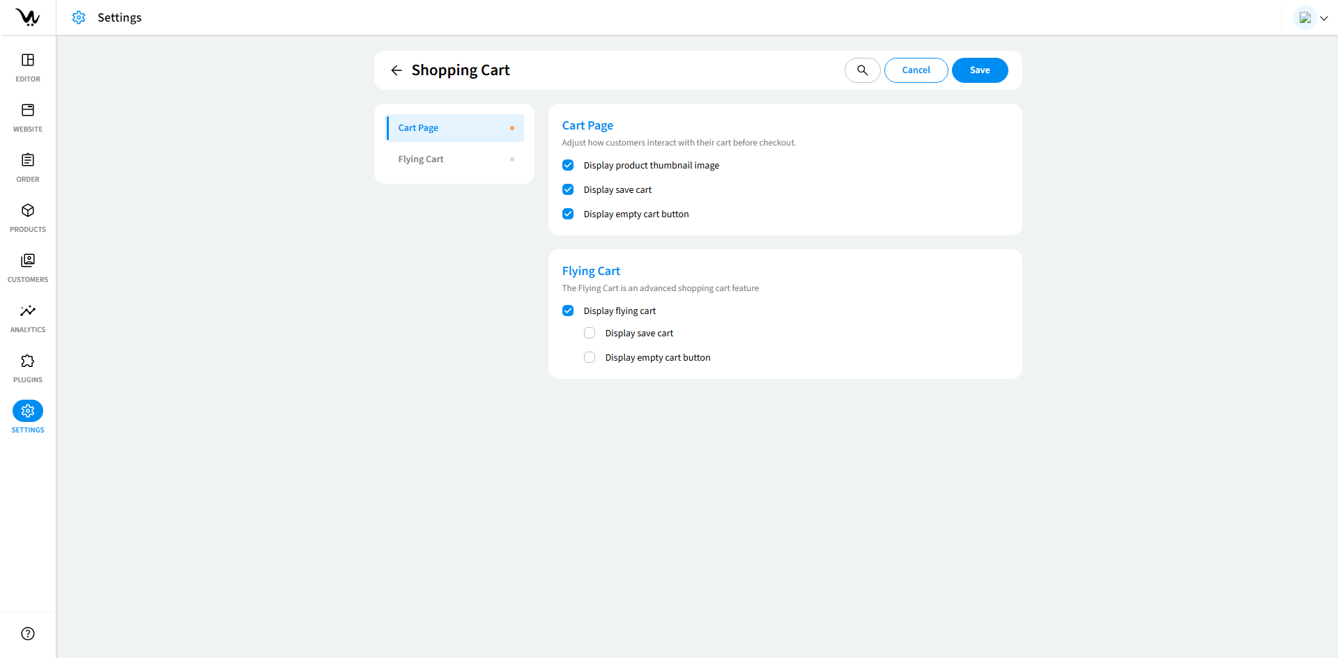This guide will walk you through configuring and managing the Shopping Cart Settings of your store. This feature provides flexibility to enable or disable various elements, ensuring a customized user experience.